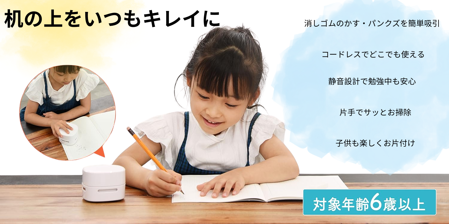 Mini デスクトップクリーナーは、オフィスやデスク、車内、キッチンなどを手軽にキレイに保つだけでなく、お子さまも一緒に楽しめる新しいお掃除スタイルを提案します。